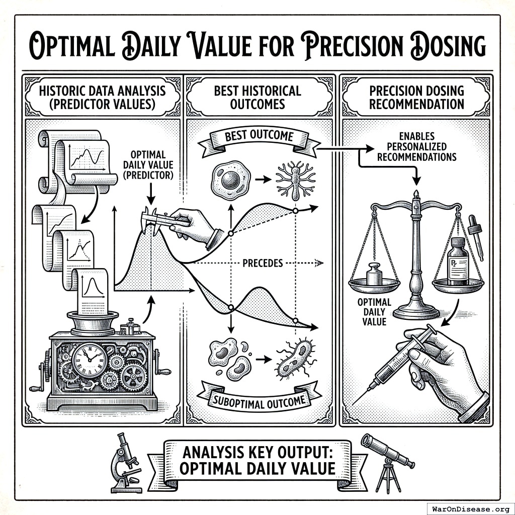 - Precision Dosing: Personalized treatment recommendations based on an individual’s historical optimal values, enabling targeted interventions at the dose most likely to produce beneficial outcomes
