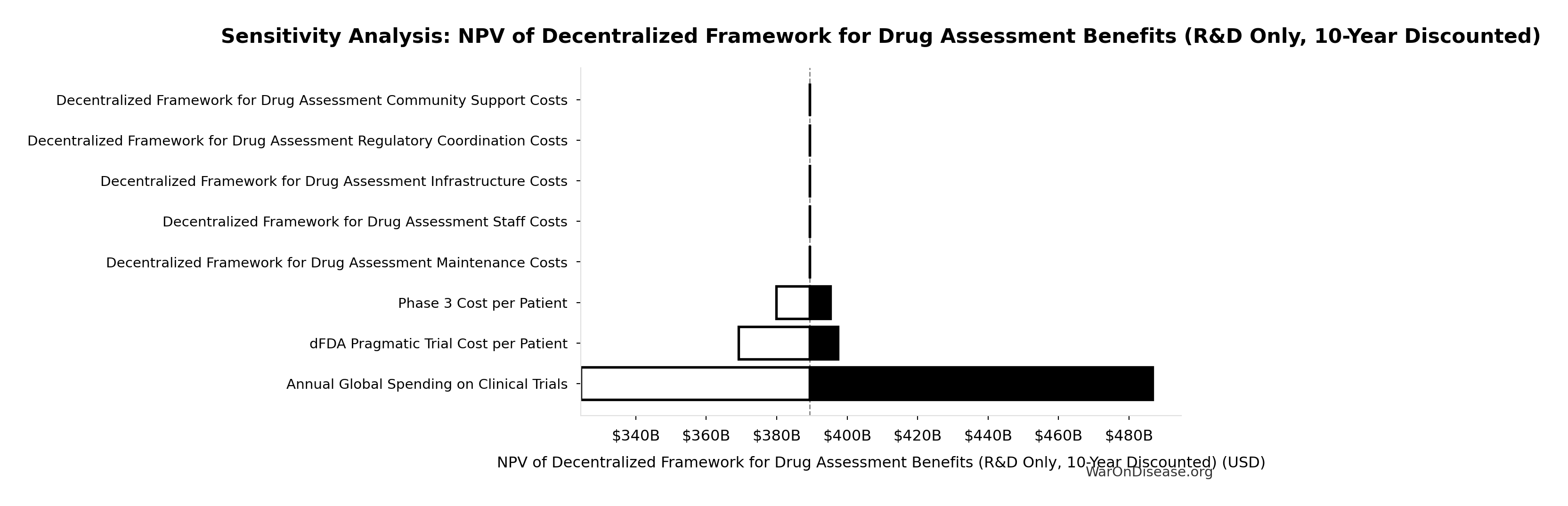 NPV of Decentralized Framework for Drug Assessment Benefits (R&D Only, 10-Year Discounted): $389B
