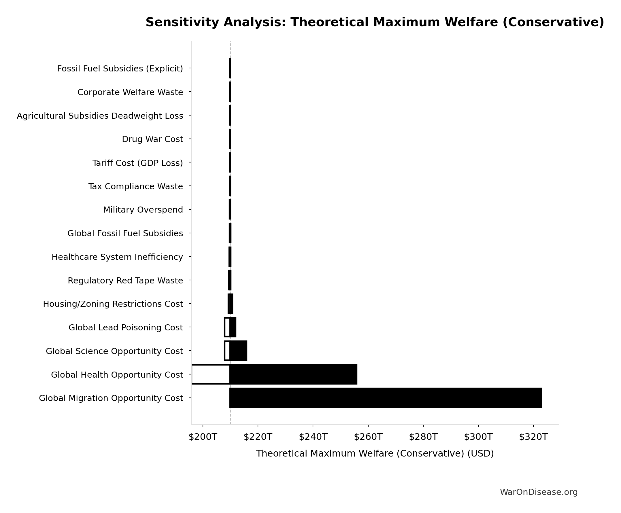 \[ \begin{gathered} Savings_{RD,ann} \\ = Benefit_{RD,ann} - OPEX_{dFDA} \\ = \$58.6B - \$40M \\ = \$58.6B \end{gathered} \] where: \[ \begin{gathered} Benefit_{RD,ann} \\ = Spending_{trials} \times Reduce_{pct} \\ = \$60B \times 97.7\% \\ = \$58.6B \end{gathered} \] where: \[ \begin{gathered} Reduce_{pct} \\ = 1 - \frac{Cost_{pragmatic,pt}}{Cost_{P3,pt}} \\ = 1 - \frac{\$929}{\$41K} \\ = 97.7\% \end{gathered} \] where: \[ \begin{gathered} OPEX_{dFDA} \\ = Cost_{platform} + Cost_{staff} + Cost_{infra} \\ + Cost_{regulatory} + Cost_{community} \\ = \$15M + \$10M + \$8M + \$5M + \$2M \\ = \$40M \end{gathered} \] ✓ High confidence
