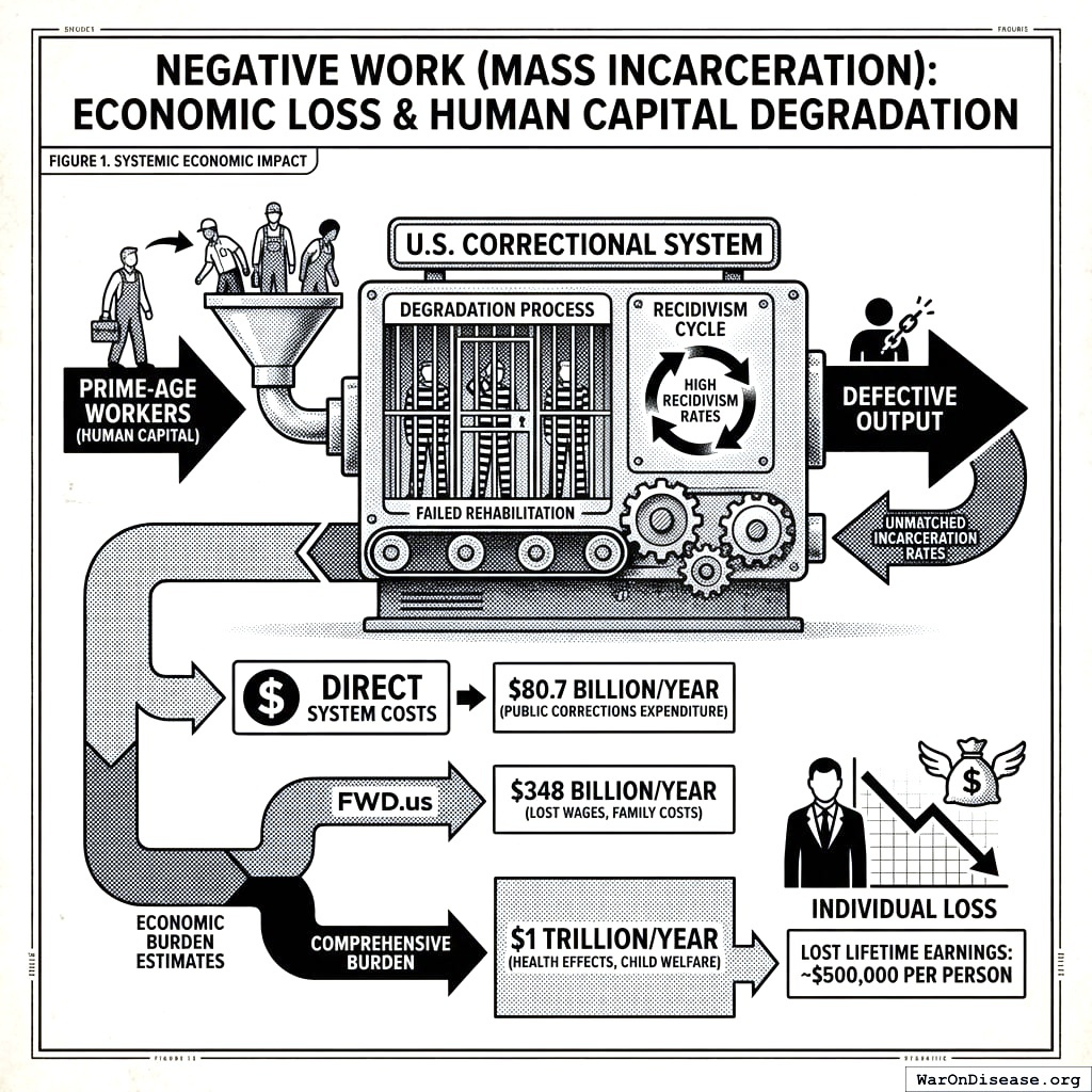 Methodological Note: Subsystem losses are estimated independently and treated as additive. While some overlap may exist (e.g., housing costs affect health via stress, incarceration overlaps with drug enforcement), excluded categories (state/local inefficiency, implicit subsidies, behavioral effects) likely offset any potential overstatement.