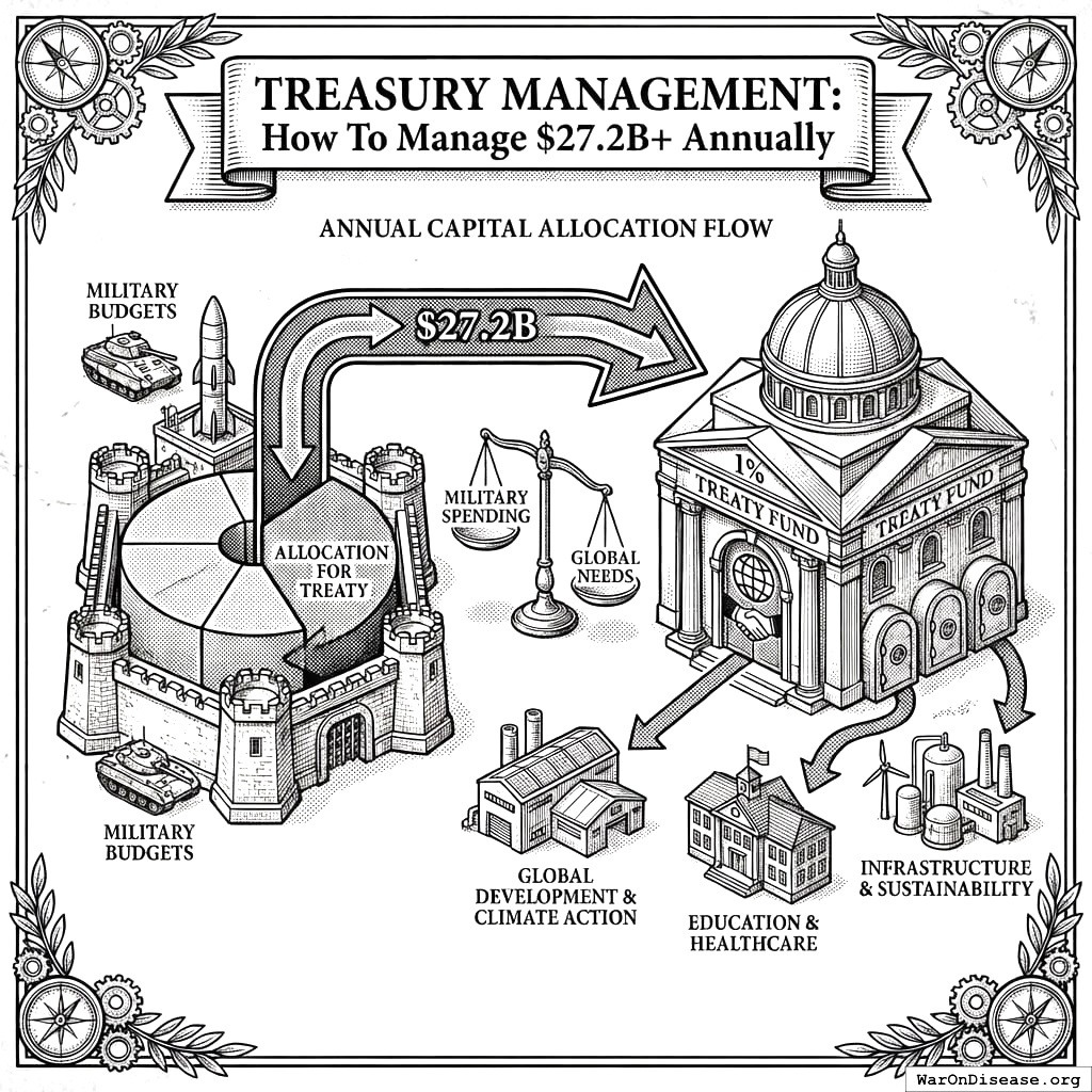 Once the treaty passes, $27.2 billion flows annually from “how to kill people” budgets into “how to stop people dying” budgets. This is the part where your financial plan stops being a financial plan and starts being a money volcano that erupts on schedule, forever.